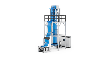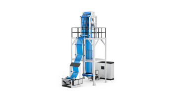 Die Blasfolien-Extrusionslinie ermöglicht die kontinuierliche Herstellung von Kunststofffolien durch Extrusion und Aufblasen. Dabei wird das Polymer in einem oder mehreren Extrudern aufgeschmolzen und durch eine ringförmige Matrize gefördert. Anschließend wird es mit Luft aufgeblasen, wodurch ein dünnwandiges, flexibles Rohr entsteht, das nach dem Abkühlen zu Folie aufgefaltet wird.