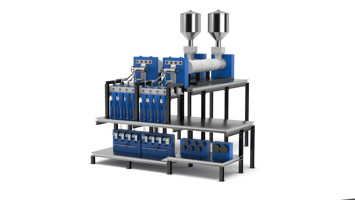 Beim Schmelzspinnen wird das Polymer (in der Regel PET, Nylon oder Polypropylen) dosiert und gemischt und anschließend dem Extruder zugeführt, in dem das Kunststoffmaterial aufgeschmolzen und homogenisiert wird. Eine Dosierpumpe sorgt für einen konstanten Durchfluss der Schmelze zum Filtersystem, wodurch Verunreinigungen entfernt werden, diedie Integrität der Filamente beeinträchtigen könnten.